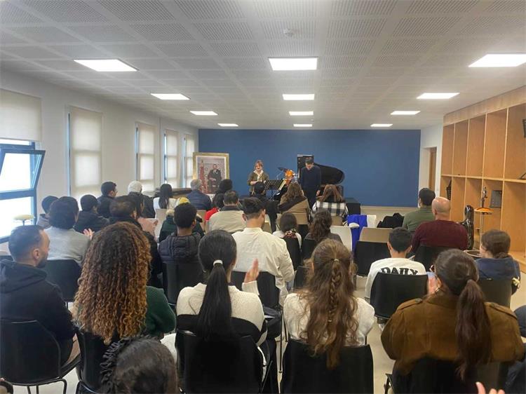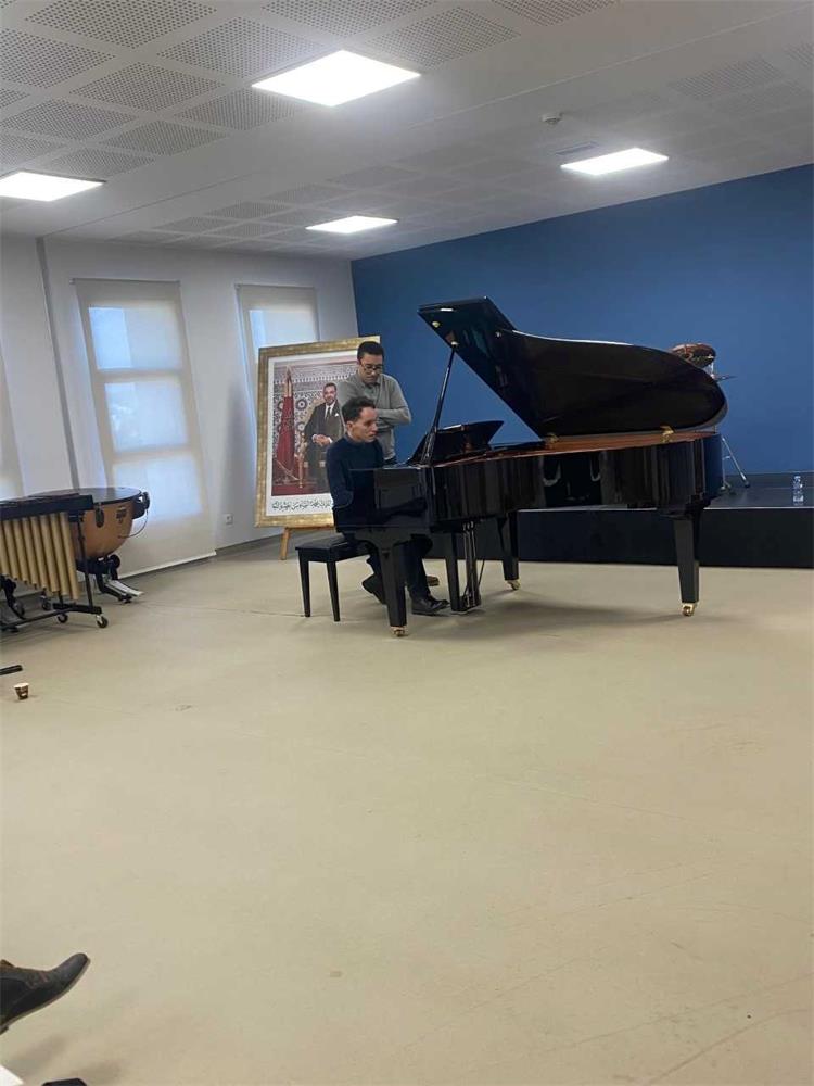 Dans la continuité de ce programme culturel, le mercredi 17 décembre, Andrea NIKOLIĆ et Stipe BILIĆ ont animé une masterclass au Conservatoire de Musique et Art Chorégraphique de Rabat, offrant aux étudiants et jeunes musiciens l’opportunité unique d’apprendre directement auprès de deux virtuoses. Au cours de cette session, les artistes ont partagé leur approche technique et artistique, abordé des passages complexes du répertoire classique, et prodigué des conseils sur l’interprétation et l’expression musicale. Les participants ont pu expérimenter le jeu en duo et recevoir des retours personnalisés, dans une atmosphère stimulante et inspirante.