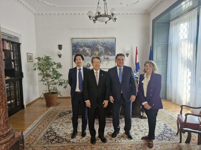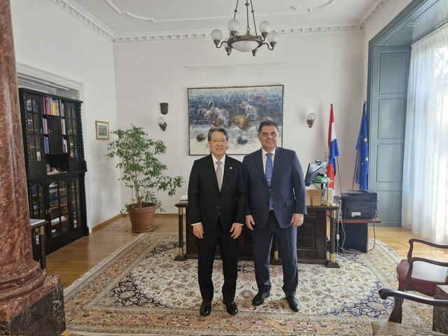 Veleposlanik Republike Hrvatske u Mađarskoj dr.sc. Mladen Andrlić primio je 10. ožujka 2026. u nastupni posjet novoimenovanog veleposlanika Japana Nj.E. Tetsuyoa Kimuru. U srdačnom razgovoru bilo je riječi o novim zajedničkim projektima kulturne diplomacije u Mađarskoj, a uz veleposlanike sastanku su prisustvovali i savjetnici za kulturu, Marina Sikora i Takeshi Ozaka.