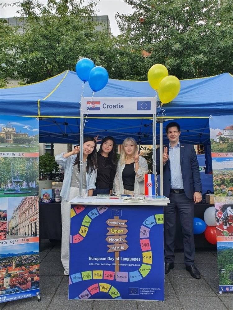 U subotu 20. rujna 2025. u Seoulu je obilježen Europski dan jezika. Na taj je dan Delegacija EU-a u Seoulu prigodno organizirala „Sajam jezika“, na kojem je veleposlanstvo svake države članice imalo svoj štand za predstavljanje svog službenog jezika. Veleposlanstvo RH u Seoulu na svom je štandu uz pomoć studentica s Odsjeka za južnu slavistiku Sveučilišta Hankuk za strane studije predstavljalo hrvatski jezik i kulturu. Na sajam je tijekom dana došlo preko 1.000 posjetitelja, koji su, između ostalog, imali priliku naučiti jednostavne izraze na hrvatskom jeziku i upoznati ljepote Hrvatske.